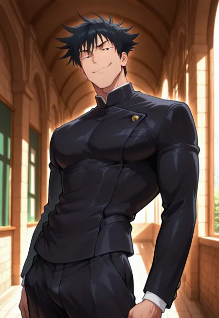 Megumi, spiky black hair, black eyes, gakuran, school uniform, black jacket, black pants