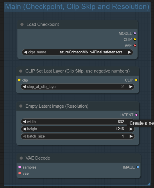 Load Checkpoint: Its your checkpoint model, like WAI-NSFW, Hassaku XL, Banana Splitz or Azure Crimson.