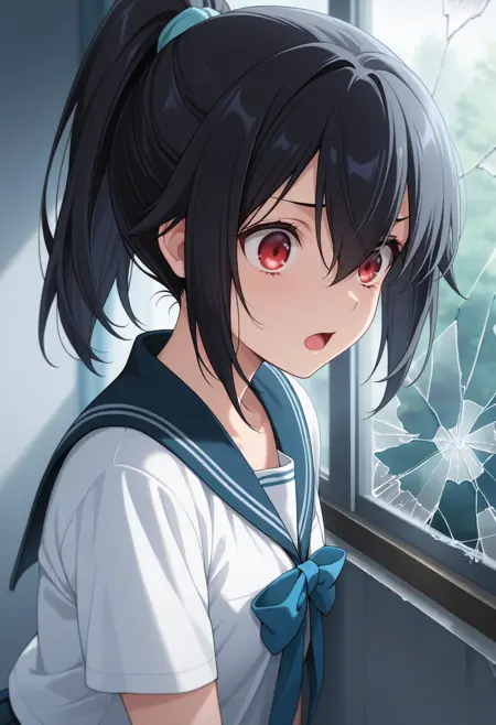 トリガーワード: akatsuki nagisa、ロングヘア、黒髪、赤い目、ポニーテール