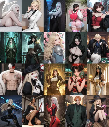 I removed all need for other embeddings/LoRA and known characters (like 2B or Hatsune Miku) and try to do a range of various style (even though they are mostly cowboy shot of female characters).