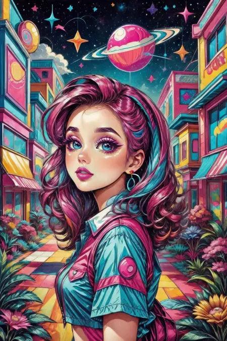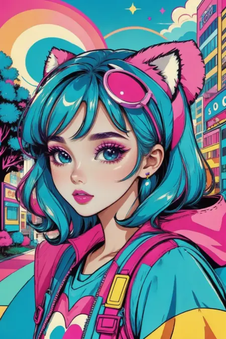 明るく、混沌としてかわいらしいスタイルで、かわいい女の子に焦点を当てます。