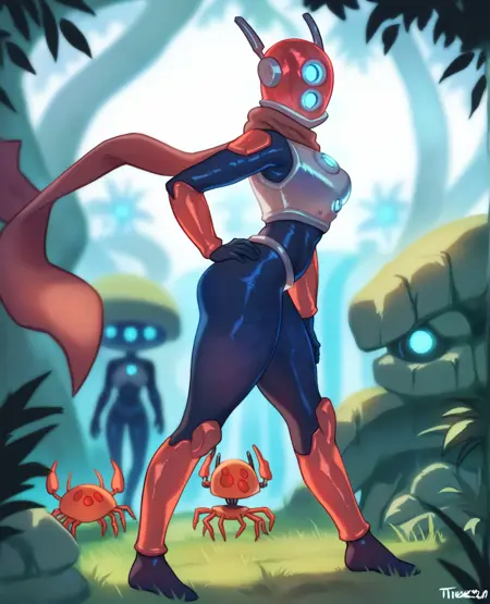 このモデルをPDXL用に更新しました。詳細は右側の「このバージョンについて」セクションをご確認ください。モデル自体はほぼ同じですが、より良いタグで、より高い解像度で、より良い最適化手法を使用して再トレーニングされています。彼女の服装とヘルメットの再現がはるかに安定しましたが、腰周りの小さな金属製ベルトを忘れることがあります。お楽しみいただけますように。