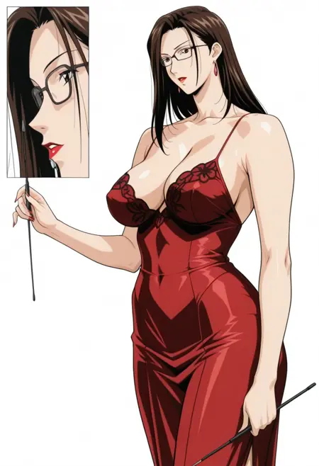 | 训练词汇 | mai-k, solo, anime mature woman, elegant graceful confident assertive woman, adult woman, 29yo, mature female, modest breasts, anime adult face, realistic adult woman figure,strong hourglass shape, slim yet voluptuous curvy body, extremely curvy and voluptuous mature woman body, tall and well-proportioned figure, glasses, long straight black hair, length-bottom shoulder hair, long single sidelock, airy to underchest, lipstick, red ring earrings, g-taste style, inspiration g-taste artstyle,已复制! |