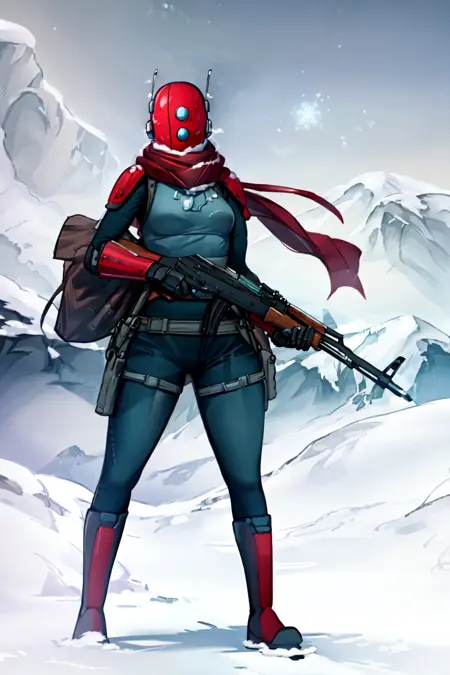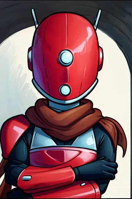 -She has 3 little inconsistent bits: Her chest light thing, her antennas, and her scarf. Usually they all behave pretty well, but it can be a little odd at lower weights. Her antenna is probably more consistent if you prompt it (I forgot to do this on ALL my example images :P)