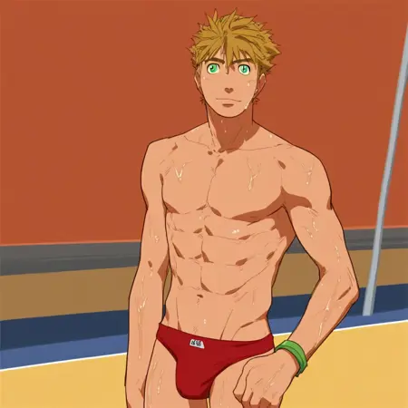 B1t, 1boy, male focus, solo, blonde hair, green eyes,