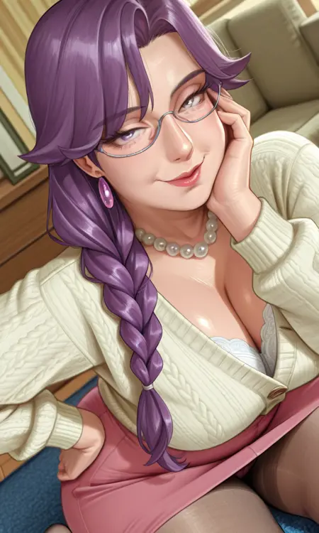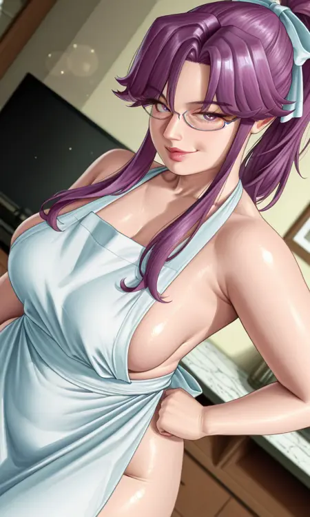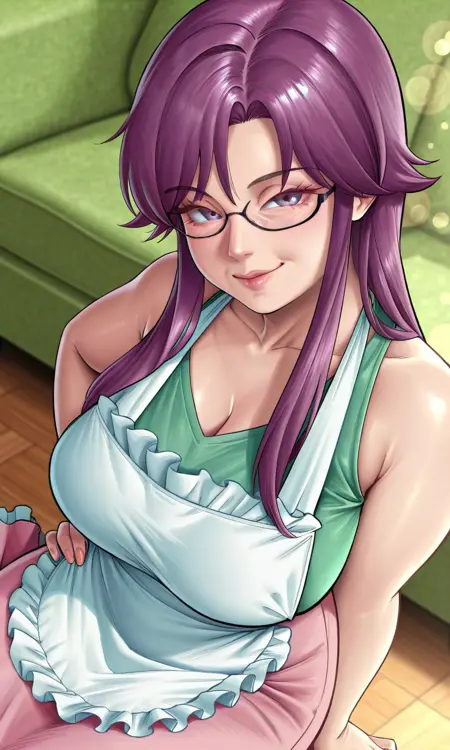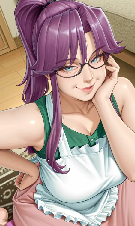 成熟女性,皱纹,老妇人,年龄增长,eiraark,haircut1,紫色头发,鬓发,发髻,单发髻,嘴唇,眼镜,半框眼镜,下框眼镜,