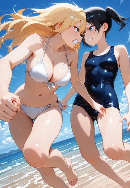 キャラの区別はForge CoupleかRegional Prompterを使用すれば可能です。