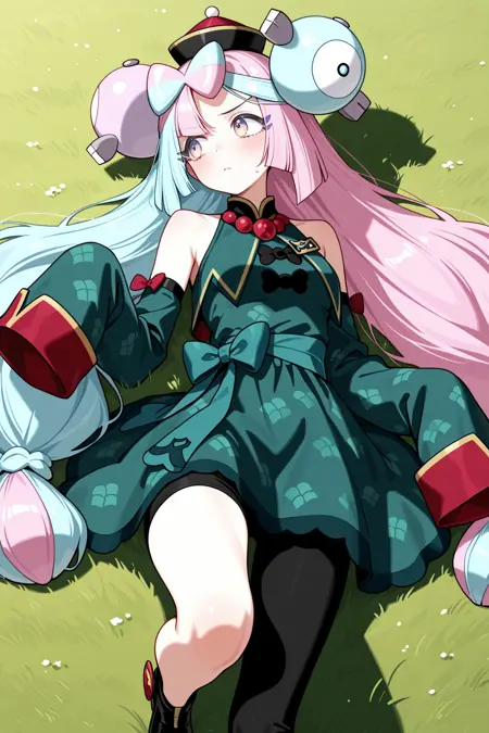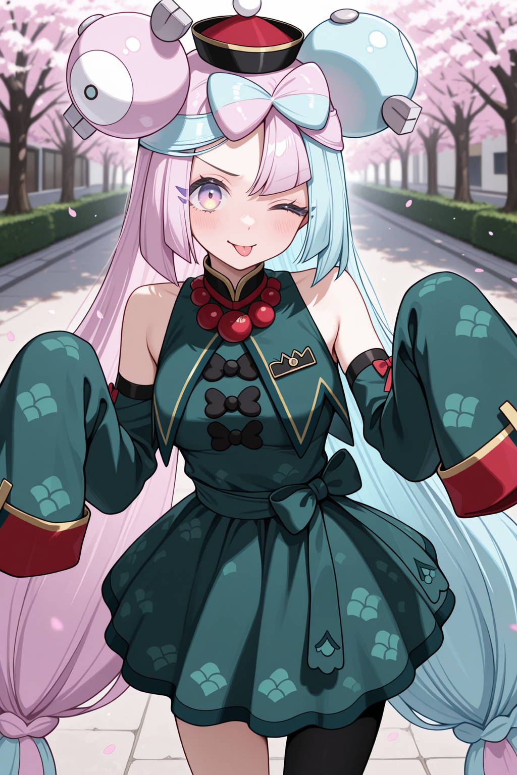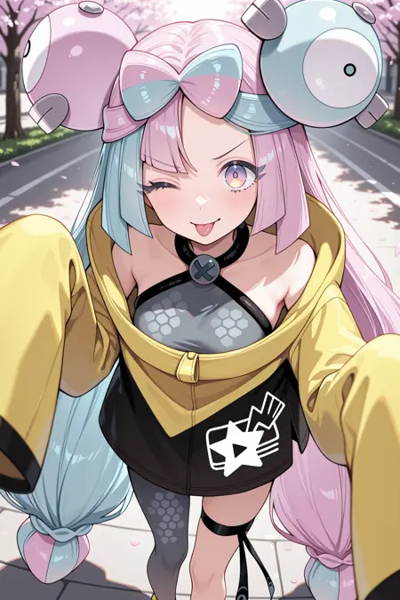 iono (pokemon), multicolored eyes, gradient eyes, pink hair, multicolored hair, very long hair, blue hair, hair ornament, low-tied long hair, multicolored hair, split-color hair, twintails, two-tone hair