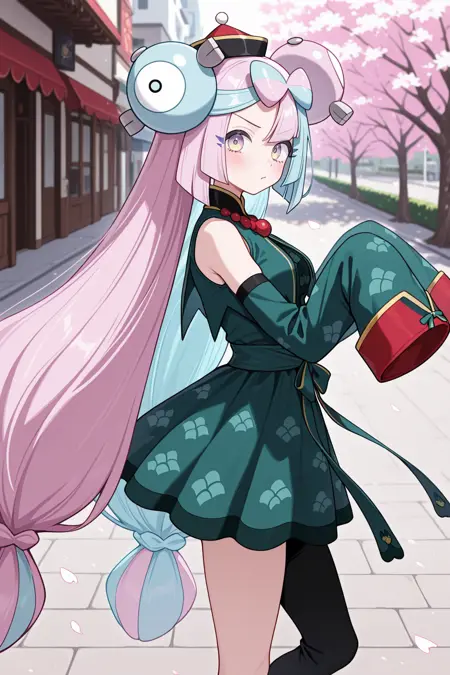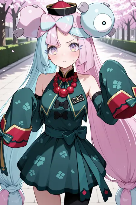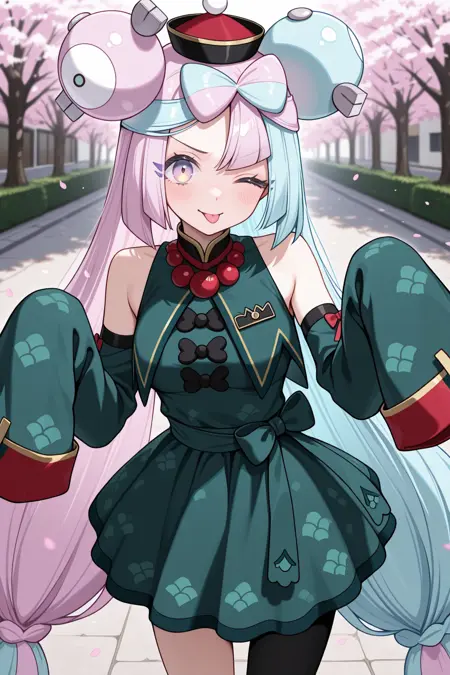 iono (pokemon), 다색 눈, 그라데이션 눈, 분홍색 머리카락, 다색 머리카락, 매우 긴 머리카락, 파란색 머리카락, 머리장식, 낮게 묶은 긴 머리카락, 다색 머리카락, 이색 머리카락, 트윈테일, 이톤 머리카락