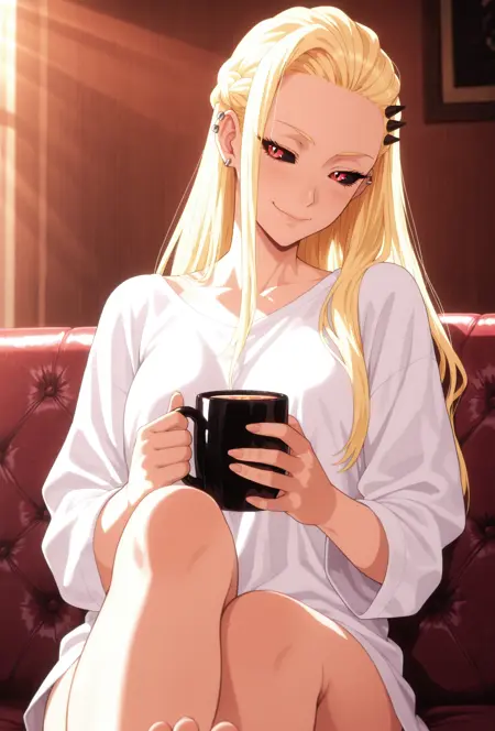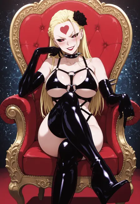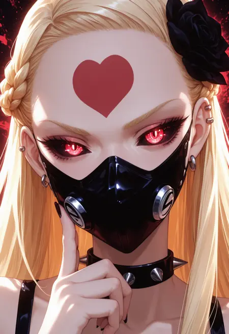 d0s, long hair, blonde hair, (forehead mark), black sclera, red eyes,