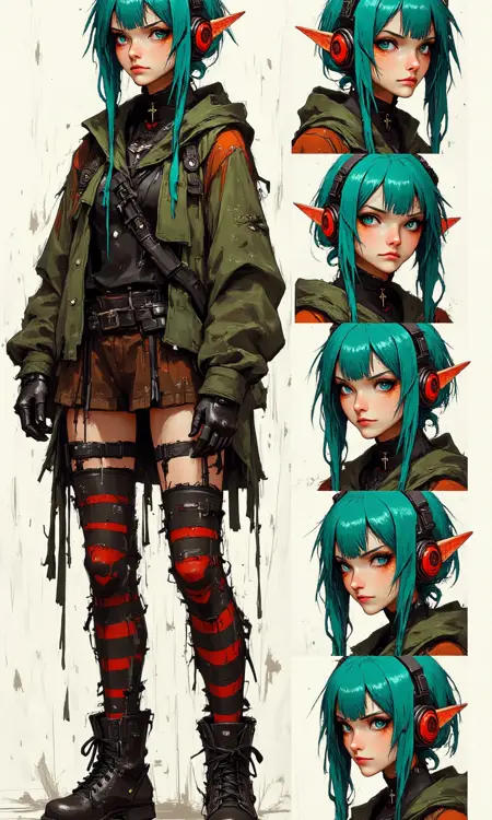 A look that feels equal parts fashion sketch, storybook, cyberpunk zine, and indie animation frame