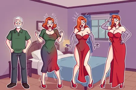 "변환 시퀀스 (이미지1) 남자에서 (이미지2) 여자로, 일러스트"