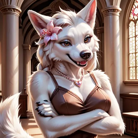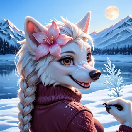친구가 제게 그녀를 퓨리/애ント로 캐릭터로 만들어달라고 부탁했을 때, 기본적인 흰색 털과 갈색 눈 때문에 약간 망설였습니다. 그래서 그녀가 더 눈에 띄도록 몇 가지 작은 요소를 추가했습니다. 작업 기반으로 Bolt의 LoRA를 사용했습니다.