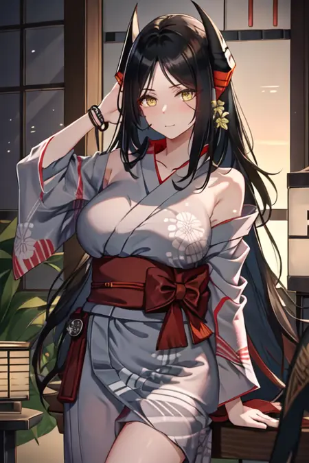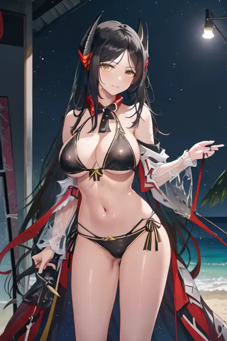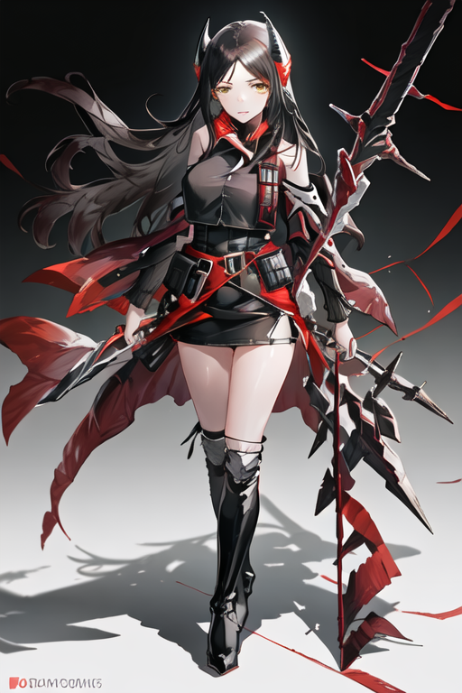 - 已精简的角色标签为:black_hair、long_hair、horns、yellow_eyes、breasts、bangs、large_breasts、very_long_hair。当角色的核心特征(如发色)不够稳定时,您可以在提示词中添加这些标签。