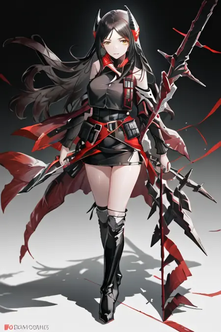 - The pruned character tags are black_hair, long_hair, horns, yellow_eyes, breasts, bangs, large_breasts, very_long_hair. You can add them into prompts when core features (e.g. hair color) of character is not so stable.