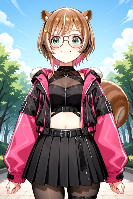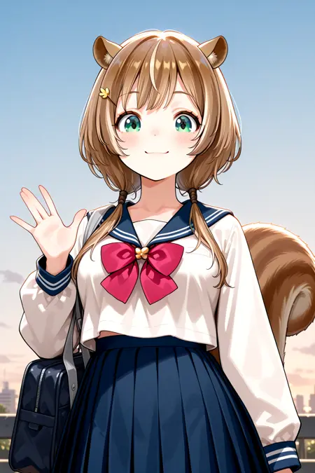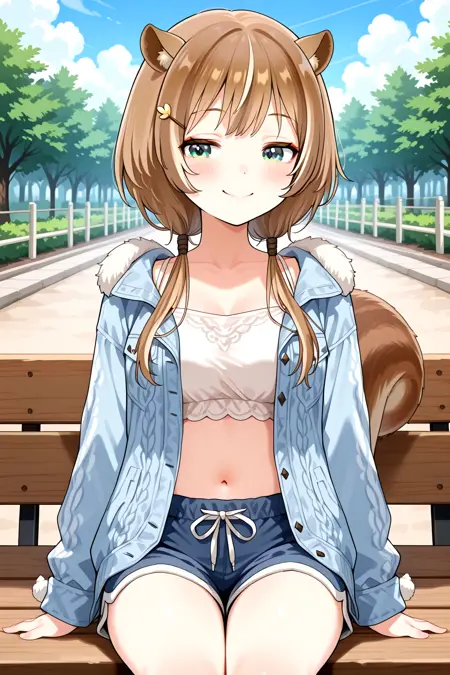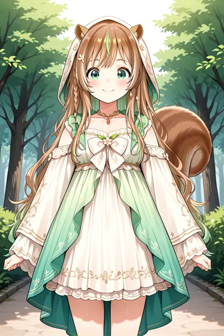 Hololive_Risu, 棕色头发, 发饰, 动物耳朵, 松鼠耳朵, 松鼠女孩, 松鼠尾巴, 绿色眼睛, 胸部, 低双马尾