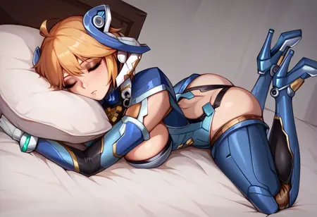 (Xenoblade_Fiora, 短发, 金发, 绿眼, 天线辫, 刘海, 手套, 连体衣, 头饰, 机器人, 机械少女, 高跟鞋),