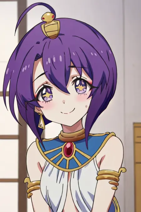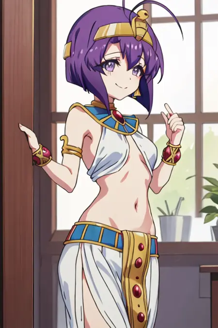 The trigger word is medeyusa_jashinchandropkick, and the recommended tags are best quality, masterpiece, highres, solo, {medeyusa_jashinchandropkick:1.15}, purple_hair, short_hair, jewelry, purple_eyes, ahoge, smile.