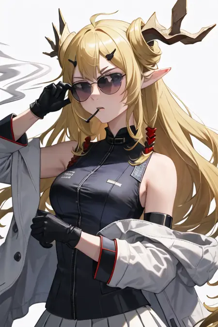 트리거 단어는 leizi_arknights이며, 권장 태그는 best quality, masterpiece, highres, solo, {leizi_arknights:1.15}, long_hair, blonde_hair, horns, pointy_ears, bangs, upper_body, purple_eyes, sleeveless, hair_ornament, blue_eyes, breasts입니다.
