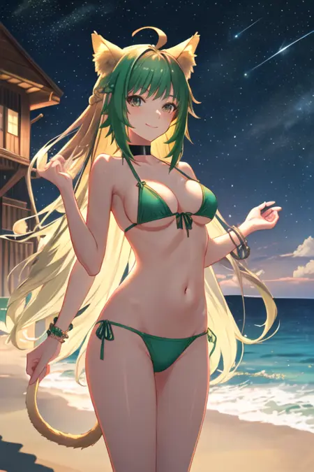 트리거 단어는 atalanta_fgo이며, 권장 태그는 best quality, masterpiece, highres, solo, {atalanta_fgo:1.15}, animal_ears, cat_ears, green_hair, long_hair, green_eyes, multicolored_hair, blonde_hair, ahoge, two-tone_hair, bangs, gradient_hair, breasts입니다.