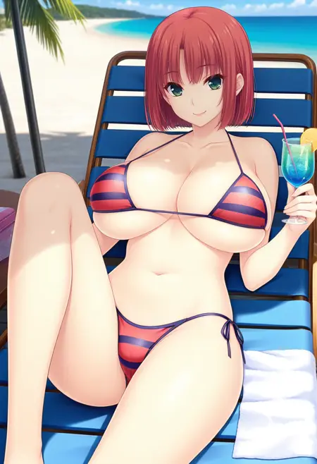 2 泳装,红色比基尼,条纹比基尼,肚脐,侧系带比基尼下装