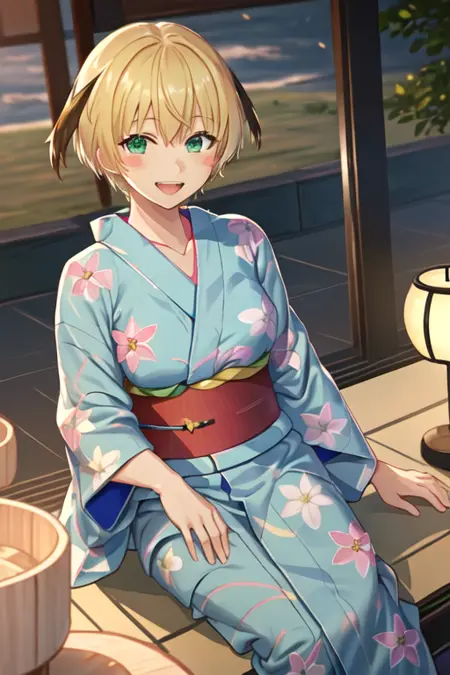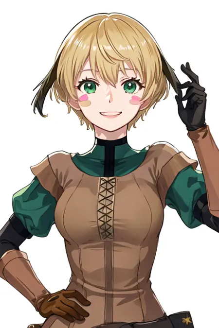 The trigger word is gareth_fgo, and the recommended tags are best quality, masterpiece, highres, solo, {gareth_fgo:1.15}, blonde_hair, short_hair, green_eyes, smile, open_mouth, blush_stickers, breasts.