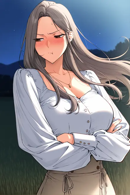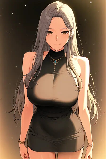 조나, Joinah_outfit8, 1소녀, 솔로, 갈색 눈, 회색 머리카락, 긴 머리카락, 중간 갈라진 앞머리, 긴 옆머리,