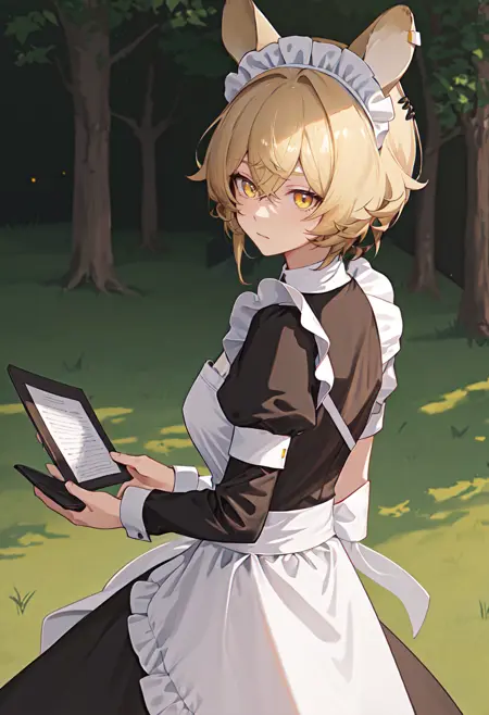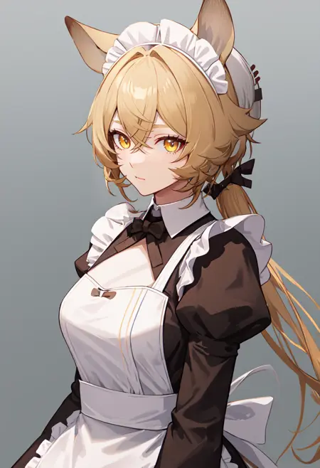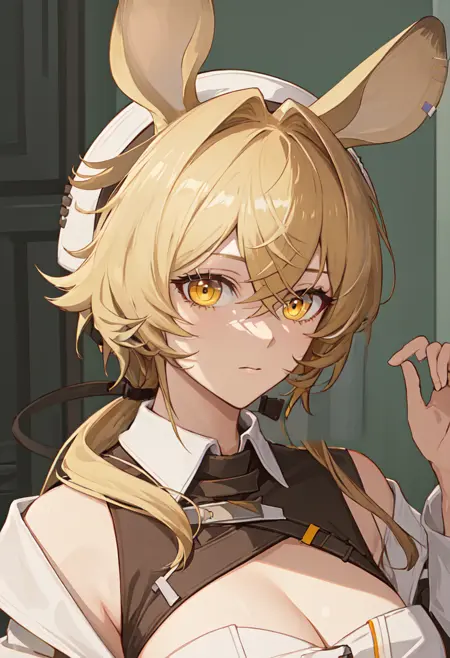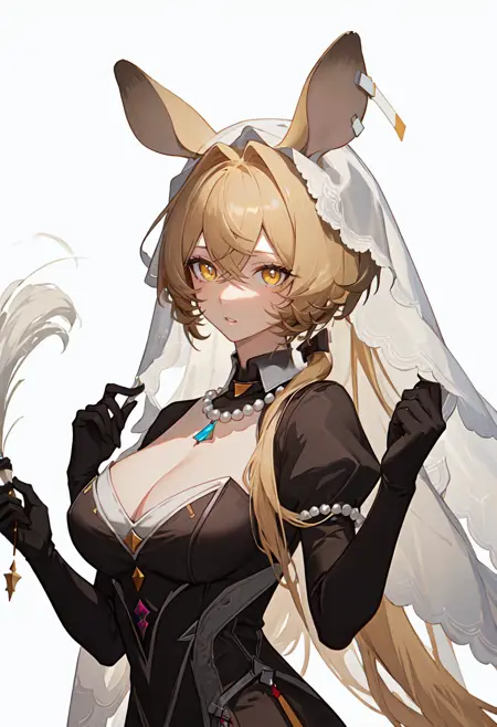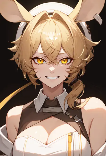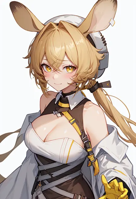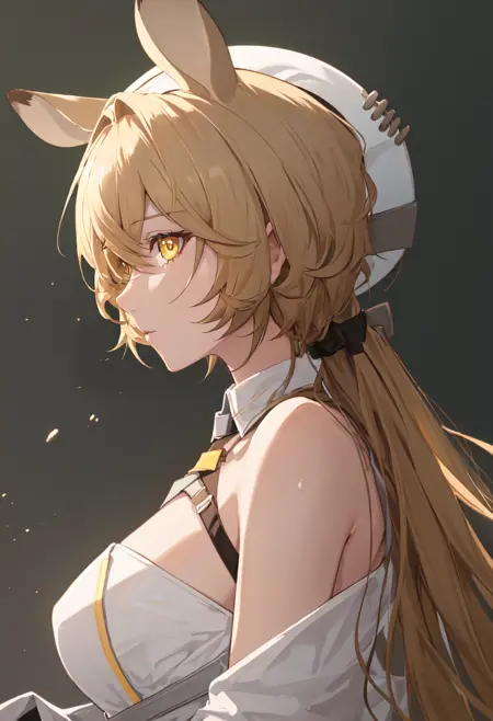 The trigger word is dorothy_arknights, and the pruned tags are animal_ears, long_hair, blonde_hair, mouse_ears, yellow_eyes, breasts, mouse_girl, hat, white_headwear, hair_between_eyes, medium_breasts, very_long_hair, large_breasts, low_ponytail. When some features (e.g. hair color) are not so stable at some times, you can add these them into your prompt.