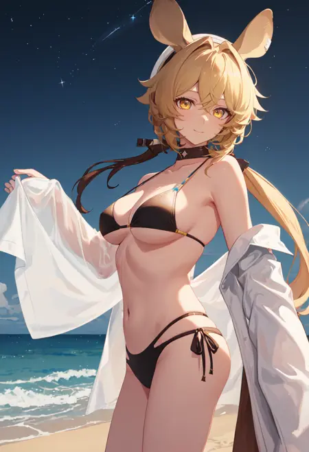 - The pruned character tags are animal ears, long hair, blonde hair, mouse ears, yellow eyes, breasts, mouse girl, hat, white headwear, hair between eyes, medium breasts, very long hair, large breasts, low ponytail. You can add them into prompts when core features (e.g. hair color) of character is not so stable.