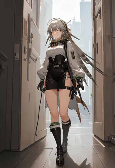 The trigger word is fartooth_arknights, and the pruned tags are long_hair, yellow_eyes, grey_hair, breasts, feather_hair, medium_breasts. When some features (e.g. hair color) are not so stable at some times, you can add these them into your prompt.