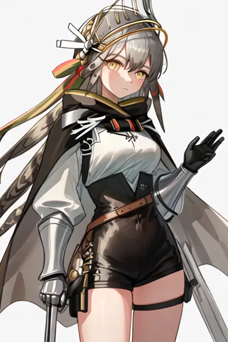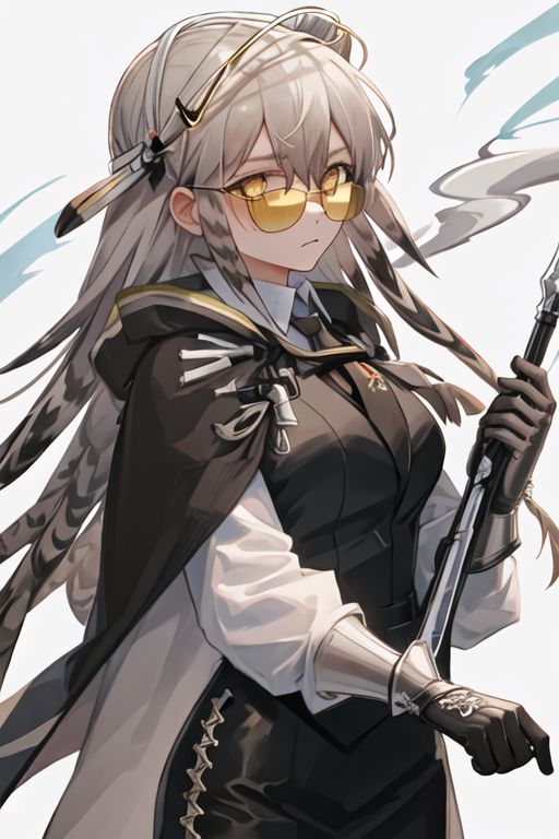 The trigger word is fartooth_arknights, and the pruned tags are long_hair, yellow_eyes, grey_hair, breasts, feather_hair, medium_breasts. When some features (e.g. hair color) are not so stable at some times, you can add these them into your prompt.