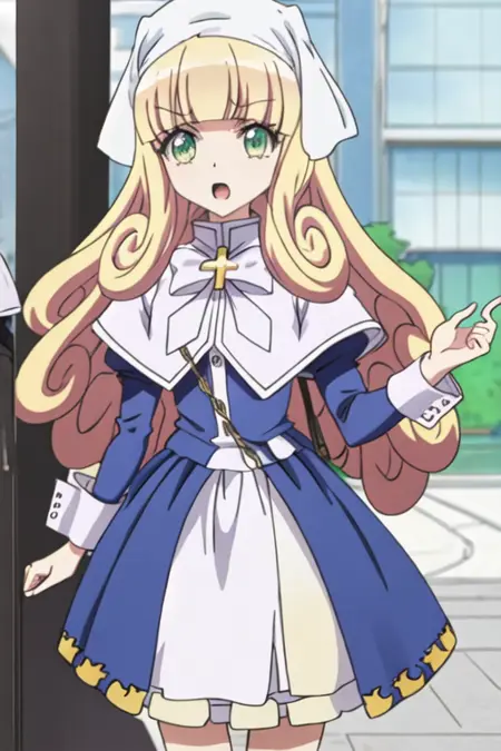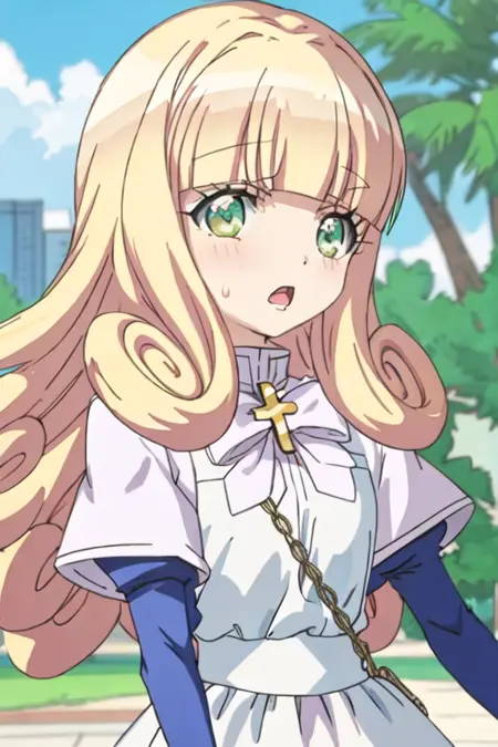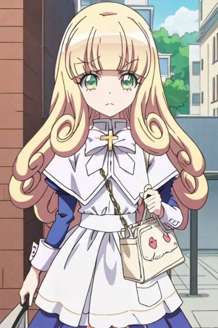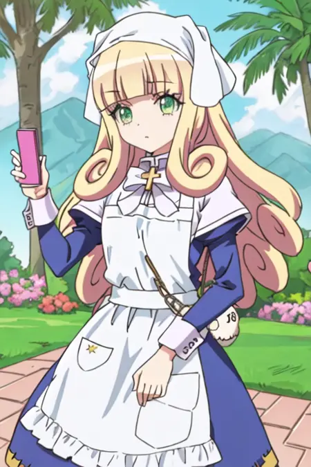 触发词为 poporon_jashinchandropkick,推荐标签为:best quality, masterpiece, highres, solo, {poporon_jashinchandropkick:1.15}, blonde_hair, long_hair, bangs, green_eyes, blunt_bangs。
