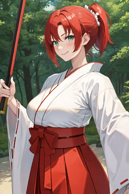 The trigger word is boudica_fgo, and the recommended tags are best quality, masterpiece, highres, solo, {boudica_fgo:1.15}, red_hair, breasts, short_hair, blush, large_breasts, short_ponytail, bangs, green_eyes, smile, ponytail.