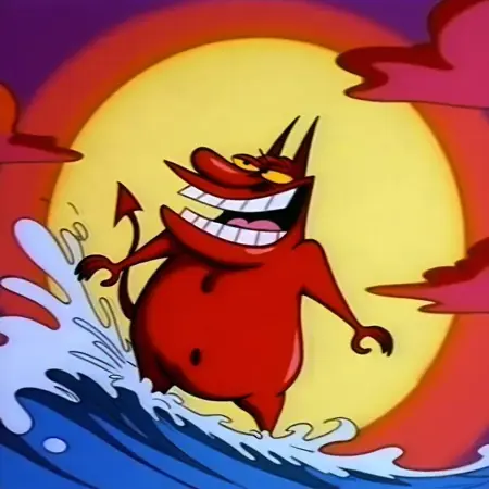 Trained on 18 images from the 1997 animated cartoon sitcom Cow and Chicken. 8th epoch, 8 steps training.