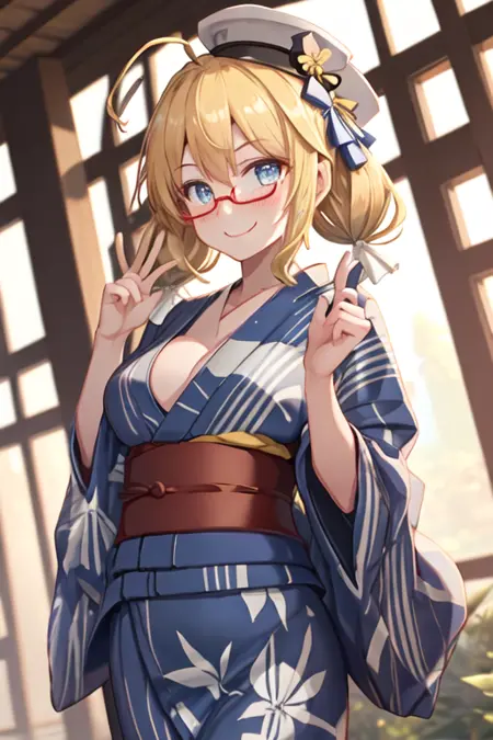 トリガーワードはi_8_kantaicollection、推奨タグはbest quality, masterpiece, highres, solo, {i_8_kantaicollection:1.15}, blonde_hair, glasses, red-framed_eyewear, twintails, breasts, low_twintails, hat, semi-rimless_eyewear, long_hair, large_breasts, blue_eyes, swimsuit, under-rim_eyewear, one-piece_swimsuit, school_swimsuit, ahoge, blush, smile, peaked_capです。