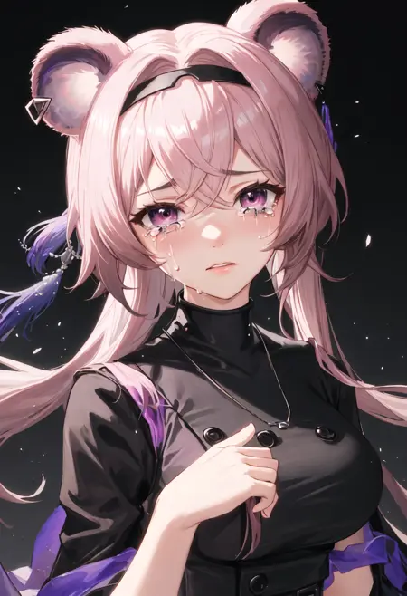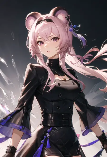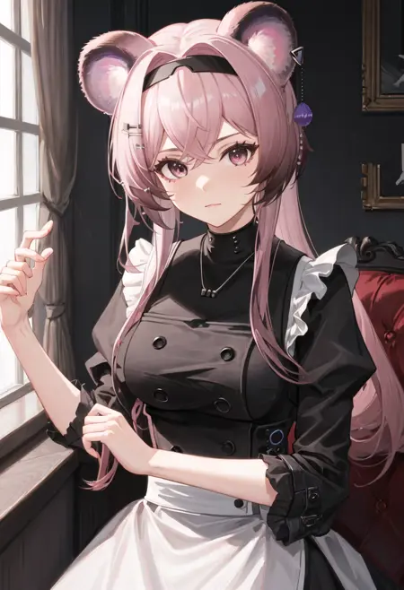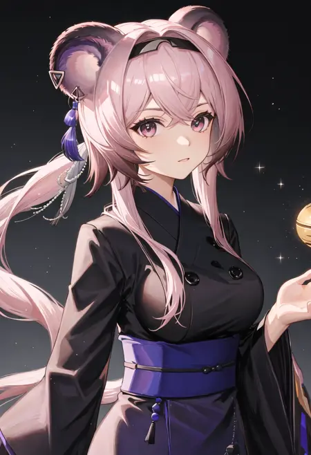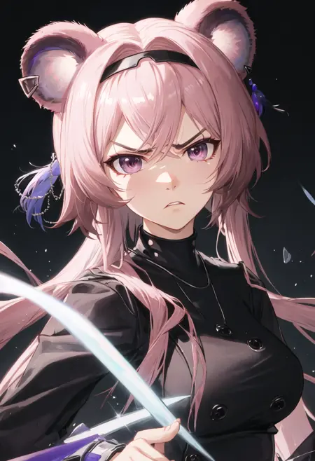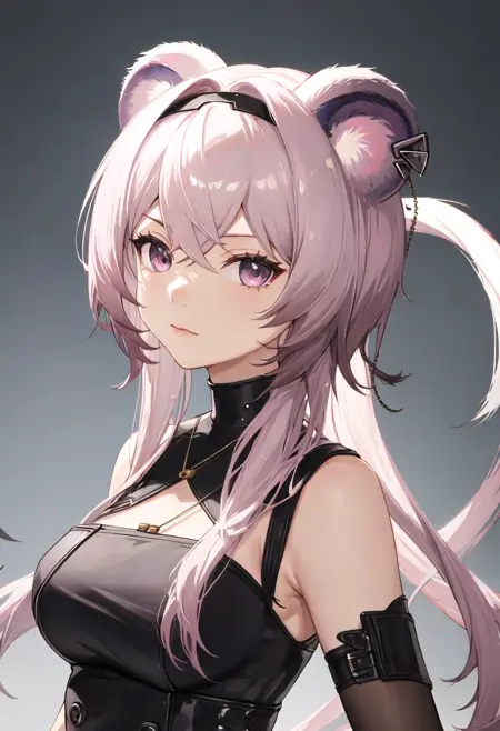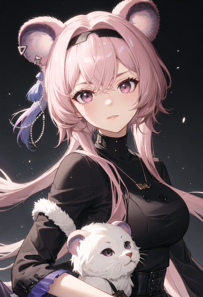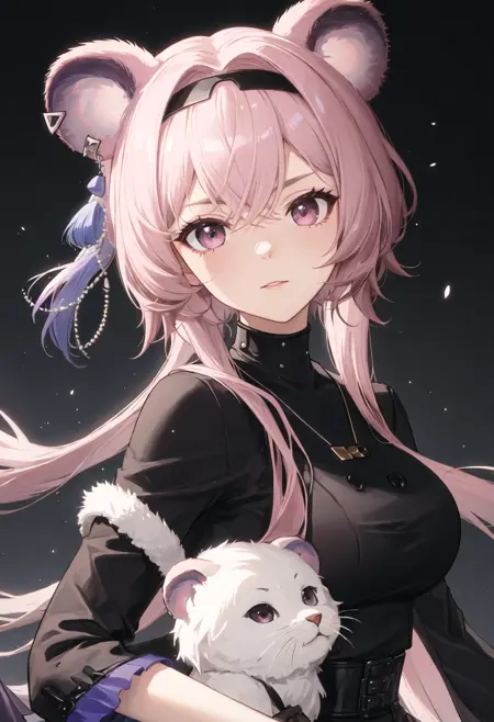 - The pruned character tags are animal_ears, long_hair, mouse_ears, breasts, bangs, pink_hair, hairband, black_hairband, pink_eyes, purple_eyes, medium_breasts, hair_between_eyes. You can add them into prompts when core features (e.g. hair color) of character is not so stable.