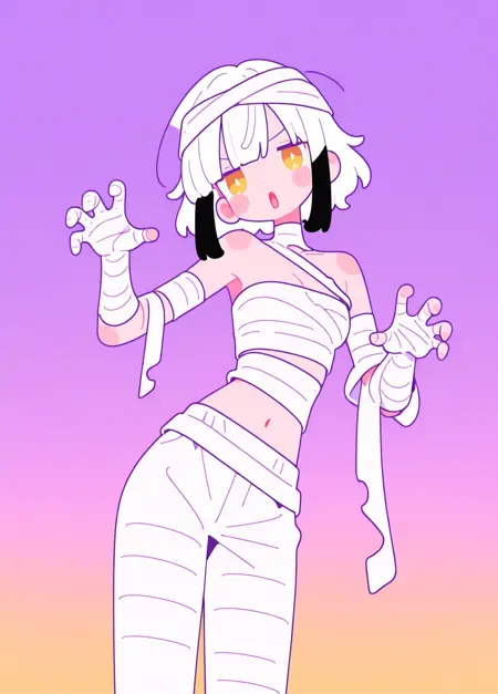 balloon, scarf, chewing gum, lollipop, visor, brushing teeth, mummy