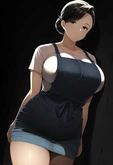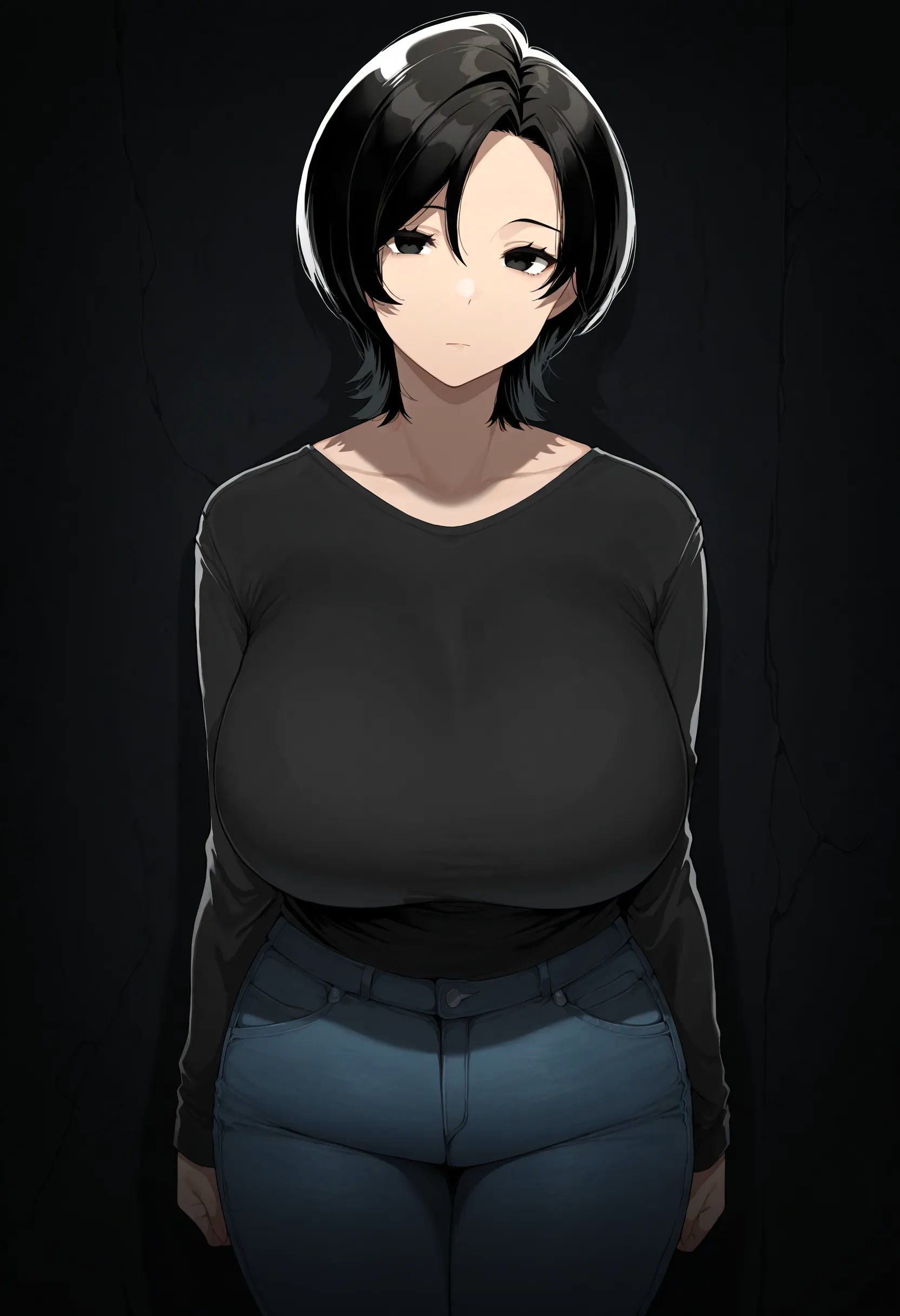 리타, (1girl, 단발, 검은 머리, 검은 눈, 큰 가슴, 거대한 가슴, 성숙한 여성).