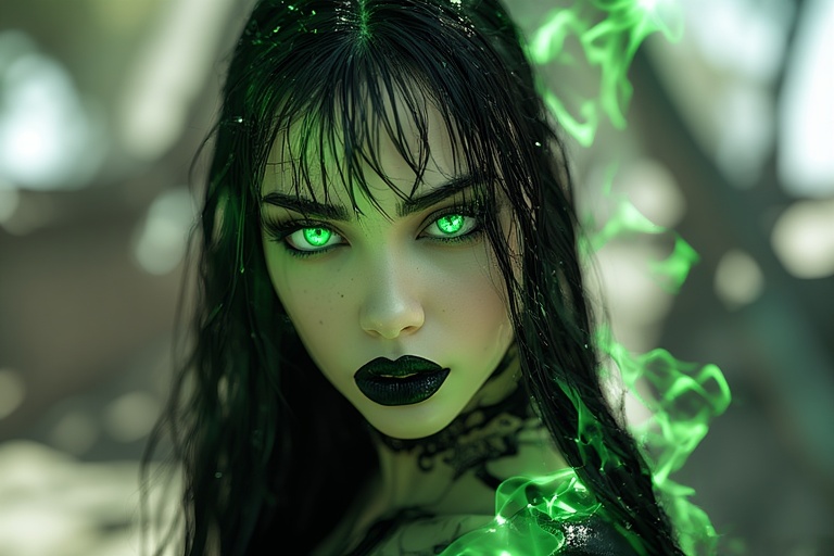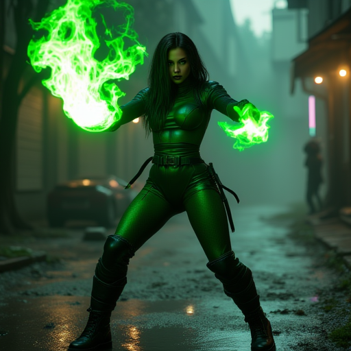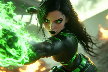 This a LoRa for Flux, and She is Shego (ish), semi similar to the Kim Possible cartoon.