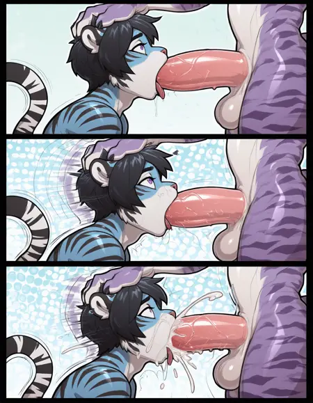 'mfwb' 是风格标签,角色块为:短发、动物耳朵、黑发、身体绒毛、老虎尾巴、虎男、男性焦点、毛茸茸的虎男孩、动物鼻子、紫眼睛、单一虎男孩焦点、阴茎、睾丸。