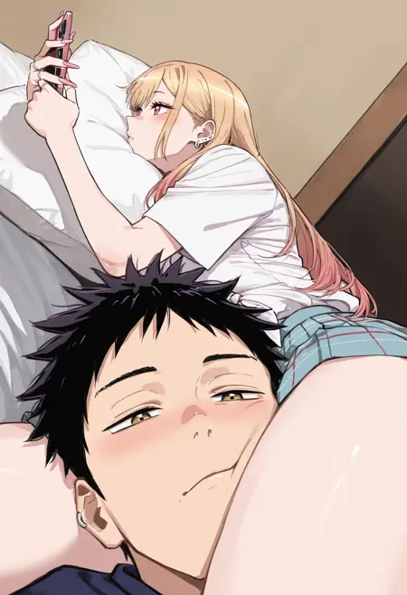 1m-th1scl1ngy, meme, holding phone, on side, in bed, compression head hips, hips, lying