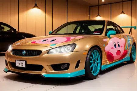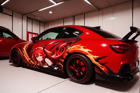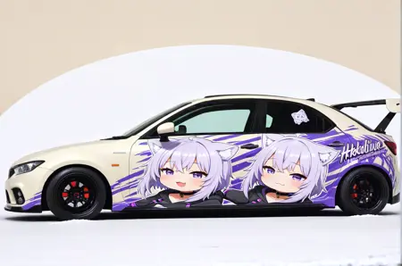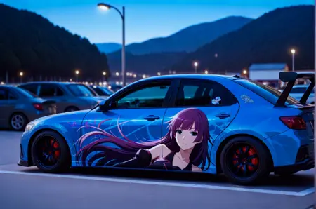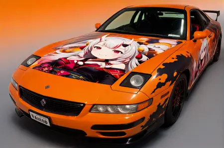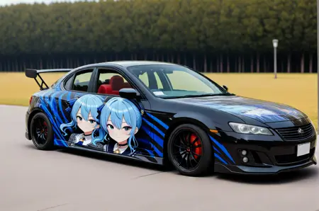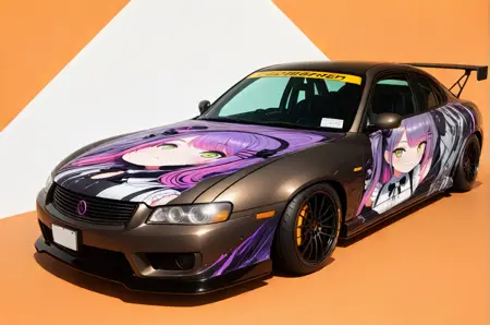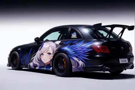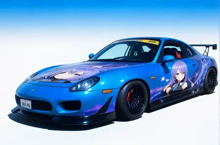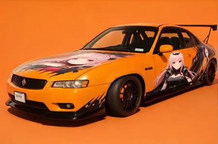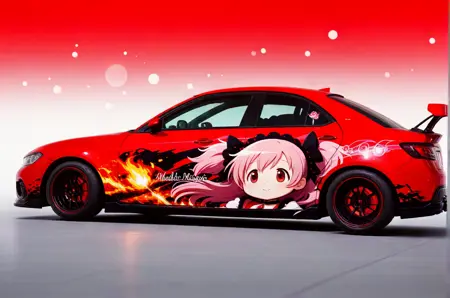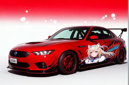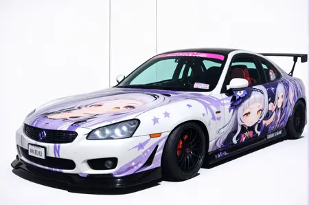 itasha car, itasha, motor vehicle, car, vehicle focus,(charactor name)