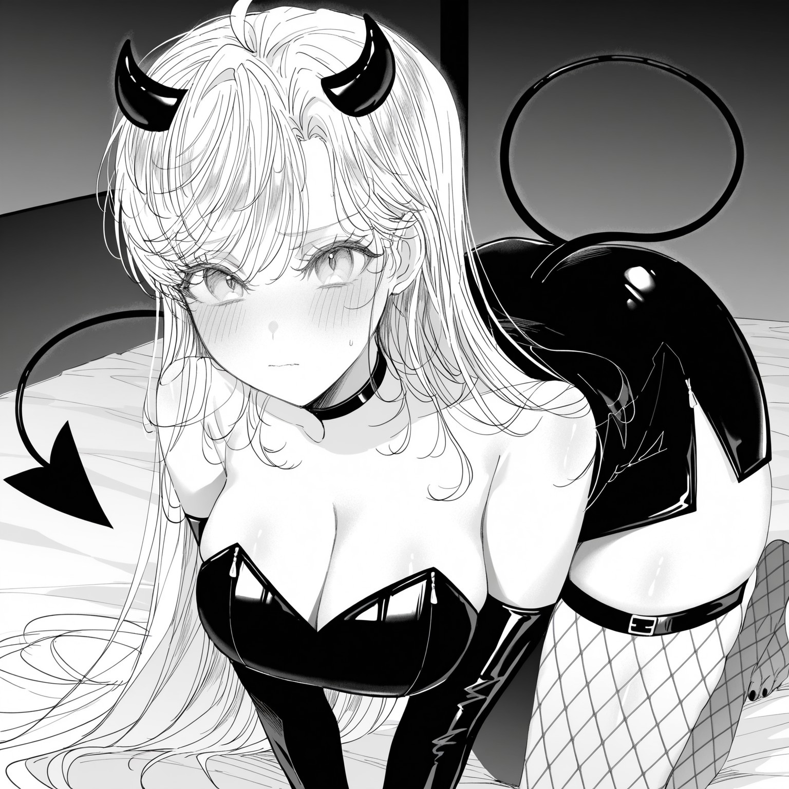 cosplay: naneimp, cosplay, imp costume, fishnets, dress, demon horns, tail, cleavage, choker, demon tail, strapless
