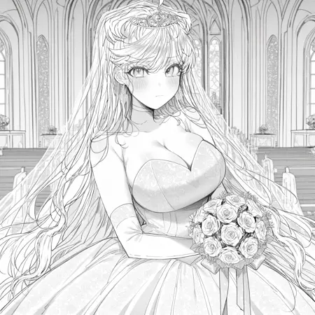wedding: nanewed, wedding dress, cleavage, tiara, bridal veil, elbow gloves, gloves