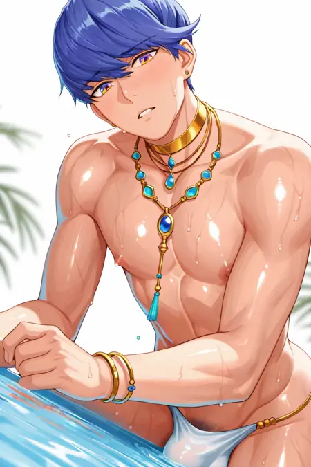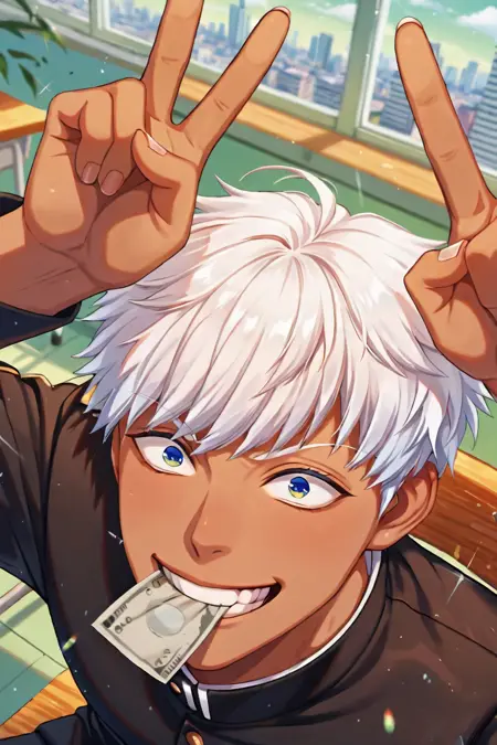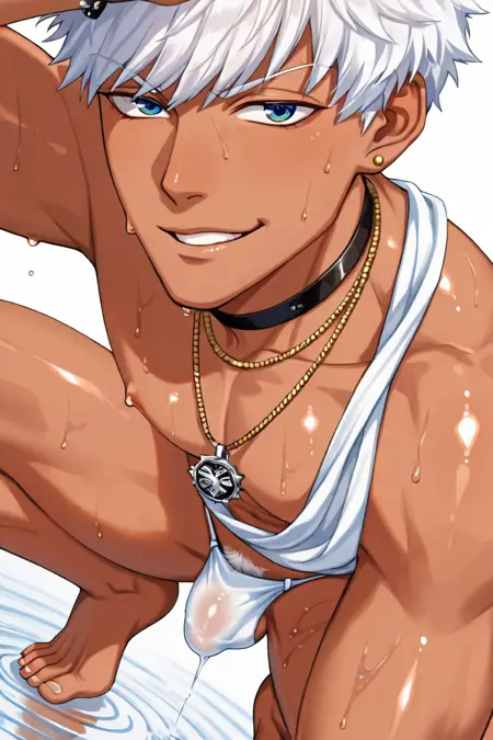 mammon-dark-skinned_6thmale focus, white_mammon_6thmale-hair, blue_mammon_6thmale-eyes