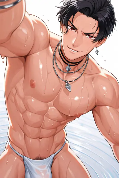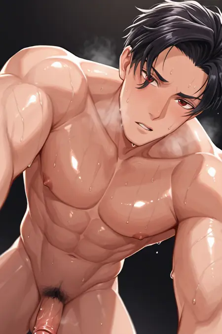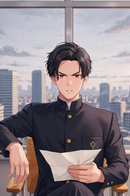 luci-5thmale focus, black_luci_5thmale-hair, red_luci_5thmale-eyes