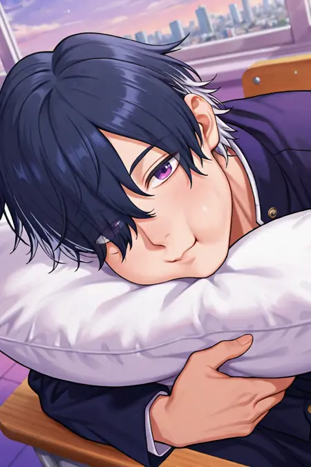 belphie-3rdmale focus, purple_belphie_3rdmale-eyes, dark blue-white_belphie_3rdmale-hair