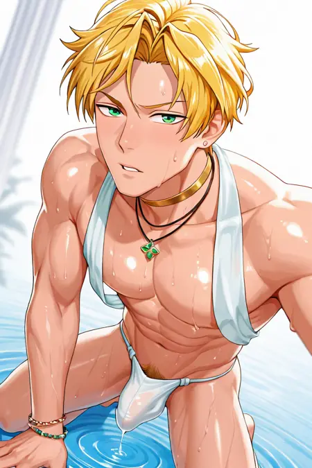 satan-7thmale focus, blonde_satan_7thmale-hair, bluish green_satan_7thmale-eyes
