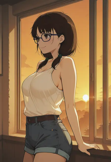 Trigger Words: rin sawaki, dark brown hair, dark brown eyes, green hair ties, dark blue glasses,