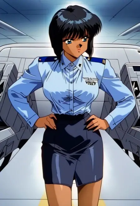 Sgt Arisa Mitaka - One of my favorite 90's amines was the 90's 801st T.T.S. Airbats. It was a comedy anime, dealing with a Japanese female elite aerobatics fighter jet team. The two main pilots fall for a geeky technician Isurugi. Mitaka was one of these pilots' and one of the main characters and a favorite of mine. I tried to create a model of her, which took forever, because I had so much trouble with hair, eyes, and skin color. I finally got what I believe to be a good model. The only outfit I could not get right was the orange flight suit.